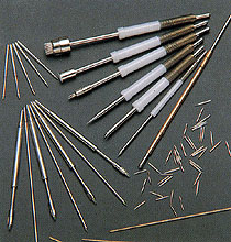 Based on the technology for manufacturing needles, offering straight cutting, stamping, quenching and grinding of extra-fine wires (coiled wires and wire rods) on a mass-production basis. Currently developing a highly cost effective vertical probe pointing and grinding high speed steel.