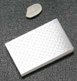 Silicone rubber with 0.15-mm holes drilled. Next to it is a grain of rice