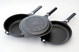 A set of pans with which you can easily turn over food to nicely cook both sides. It is needless to say that they are useful as a standard pan or pot.