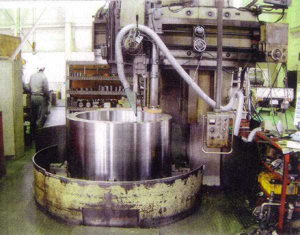 Excels in machining with horizontal boring machines and turning, being backed up by technologies accumulated since the beginning of the business. The large grinding machine we have developed for turning is capable of grinding the internal and external surfaces of objects with large diameters.