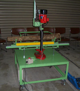 ・In the hand drill that makes the hole that drives the shiitake bacterium to the bed log for the shiitake cultivation, the hole opening is easily possible by desk-top although there is a trouble on the body that can only move vertically.