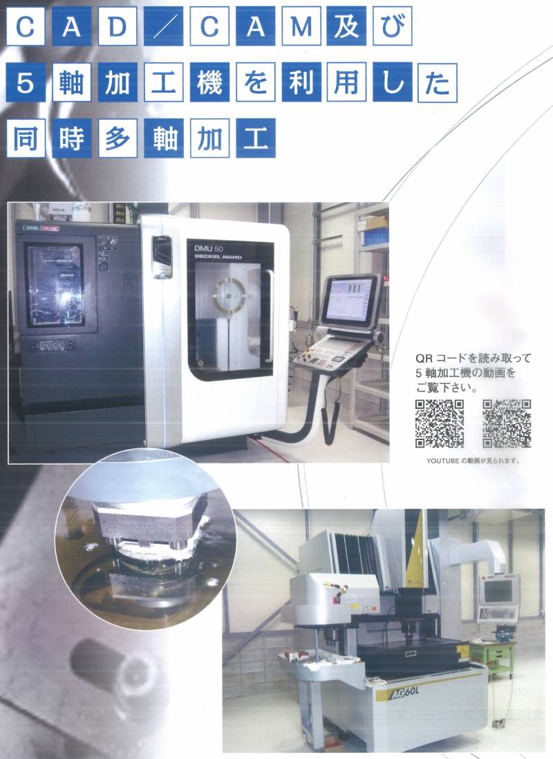 Since our establishment in 1973, we have been taking advantage of a high level of technology in the field of metalworking,particularly in precision cutting, and we have been involved in the manufacture of various machine parts.During this period we have made an active effort to introduce the latest machining technologies and processing machines,and we succeeded in realizing cutting technology for difficult-to-cut materials and other metal materials,and machining technology for manufacturing free-form surface parts by using simultaneous multi-axis machining driven by three dimensional CAD and CAM.We are now able to meet many customer expectations due to a high standard in parts machining,by combining advanced machining technologies with traditional craftsmanship skills.We hope that we are able to play a part in realizing a rich society by responding to customers' expectations by further improving quality , skill and technology.