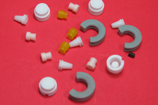 - ●樹脂製画鋲の様に、金属と針とをインサート成形し、又、二色成形も行ないます。