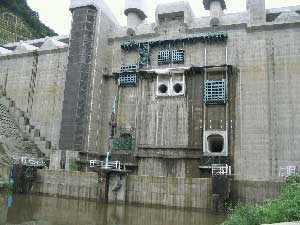 ダムには各種水門が設けられています。弊社は水門の豊富な施工実績を有しています。(苫田ダム予備ゲート)