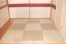 和紙表を使用した、縁無し畳(薄畳タイプ)の特殊変形加工施工。