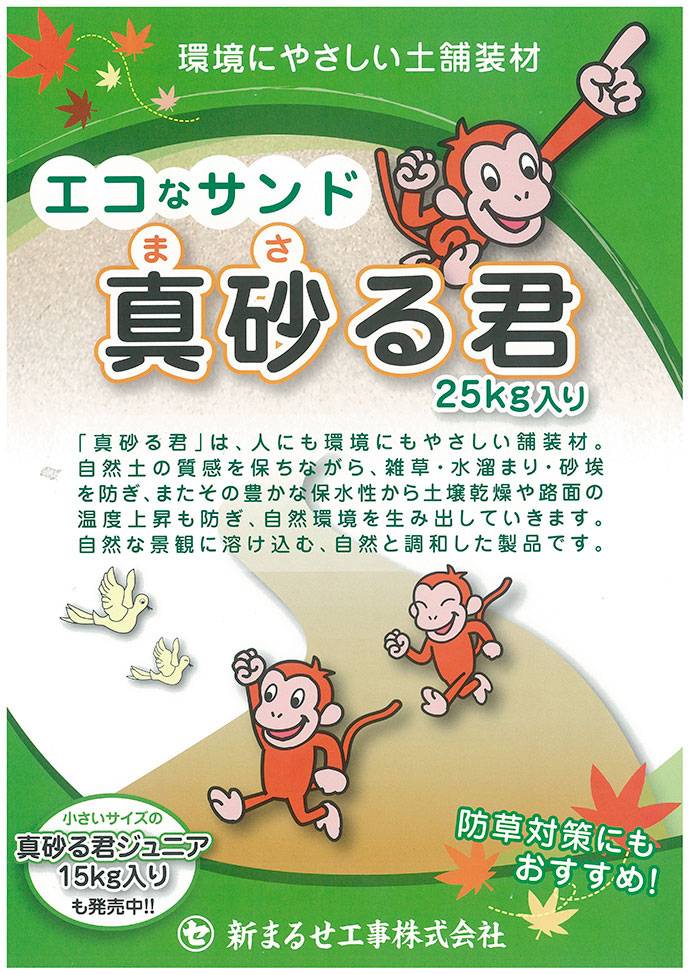 人にも環境にもやさしい舗装材「真砂る君」。 自然と調和した環境を生み出す新しい土舗装材です。