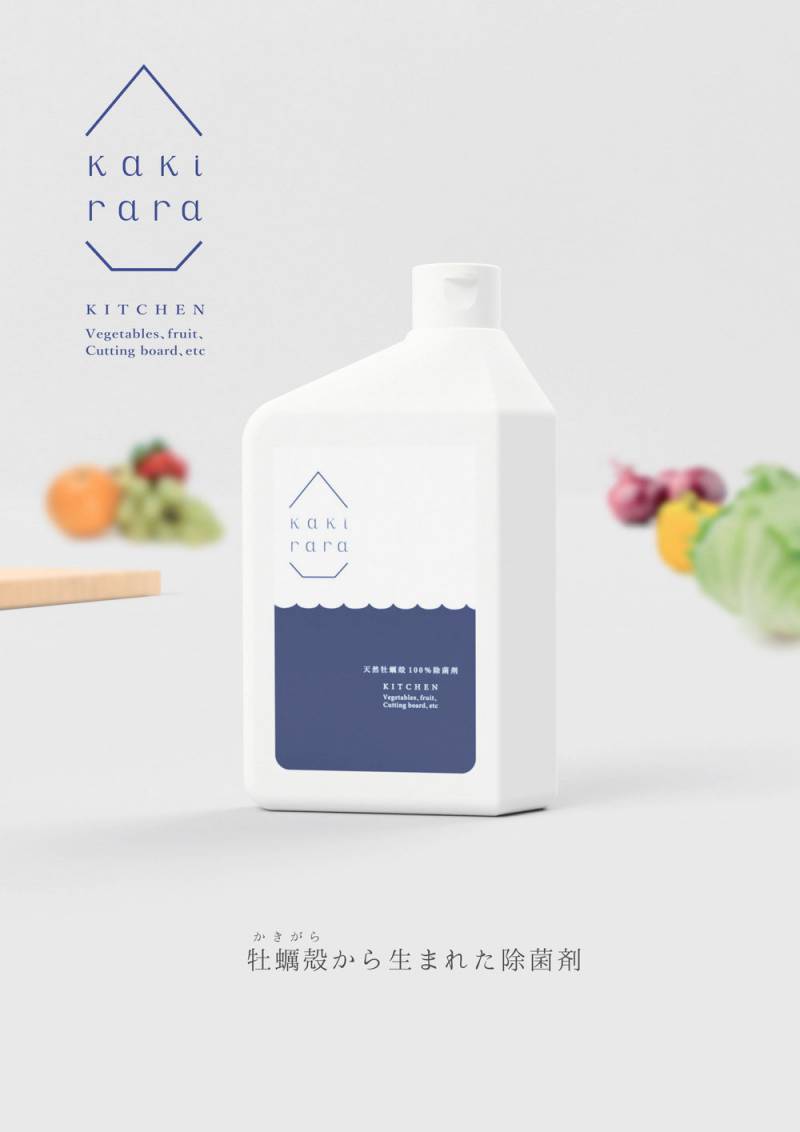 天然の牡蠣殻と水のみを原料にし、人にも環境にも優しい除菌剤、「kakirara(カキララ)」。