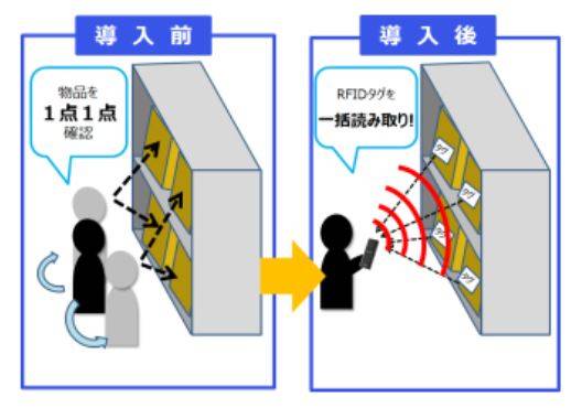 RFIDタグを貼り付けて、物品の持ち出し・返却の管理、資産の棚卸管理の効率化を実現!