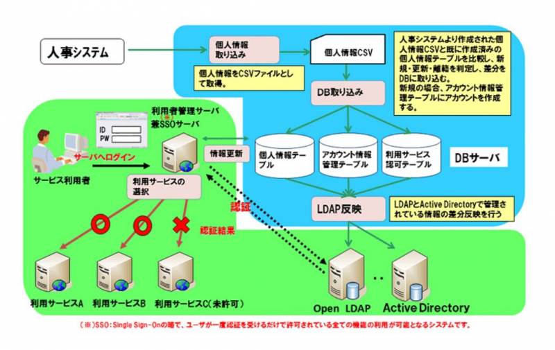 「アカウント管理システム」は、大学・専門学校等で各サービスのアカウント情報を一元管理するためのシステ