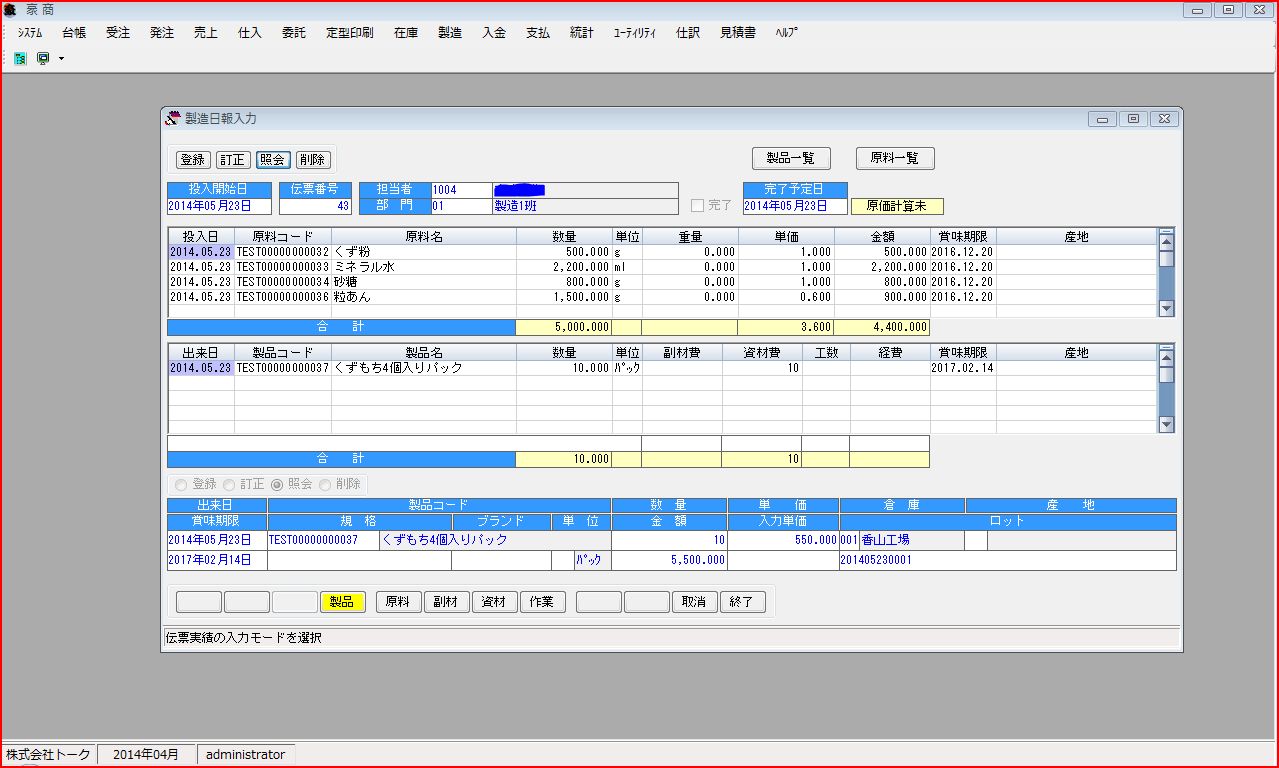 食品工場をサポートする製造・販売・在庫統合管理システム 豪商