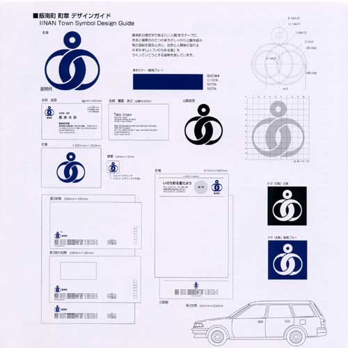 Outline of the town symbol design guide for Iinan Town. The symbol expresses the friendliness of two districts, Akana and Tonbara, by the firmly linked arms.