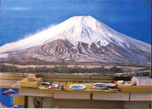 日本画に立体画法を考案し描いた富士山。遠くからでも立体的に感じる。
